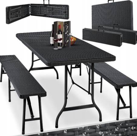KESSER Zestaw Biesiadny – Składany Stół i 2 Ławki | Stabilny, Wytrzymały, Wodoodporny