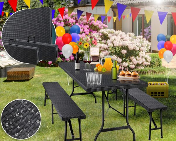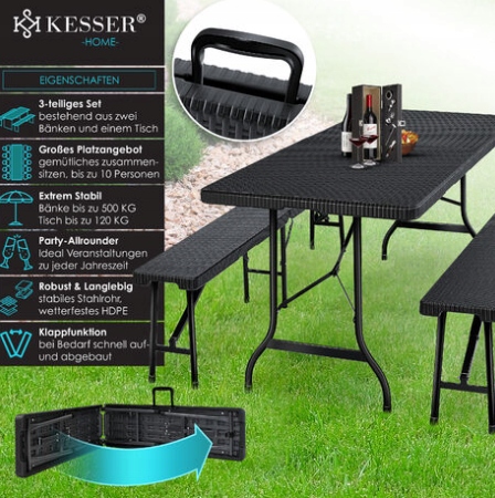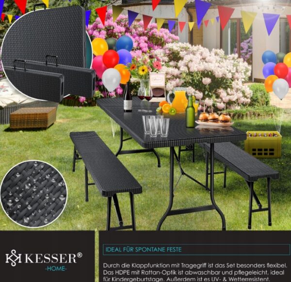 KESSER Zestaw Biesiadny – Składany Stół i 2 Ławki | Stabilny, Wytrzymały, Wodoodporny