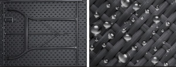 - Konstrukcja odporna na warunki atmosferyczne – stalowe rurki i wytrzymałe tworzywo HDPE
