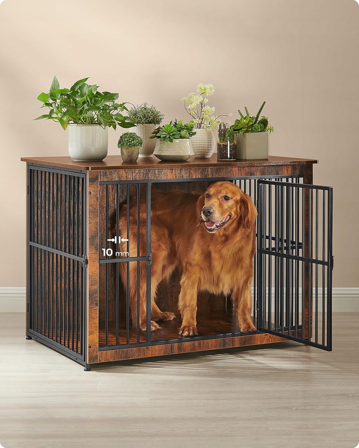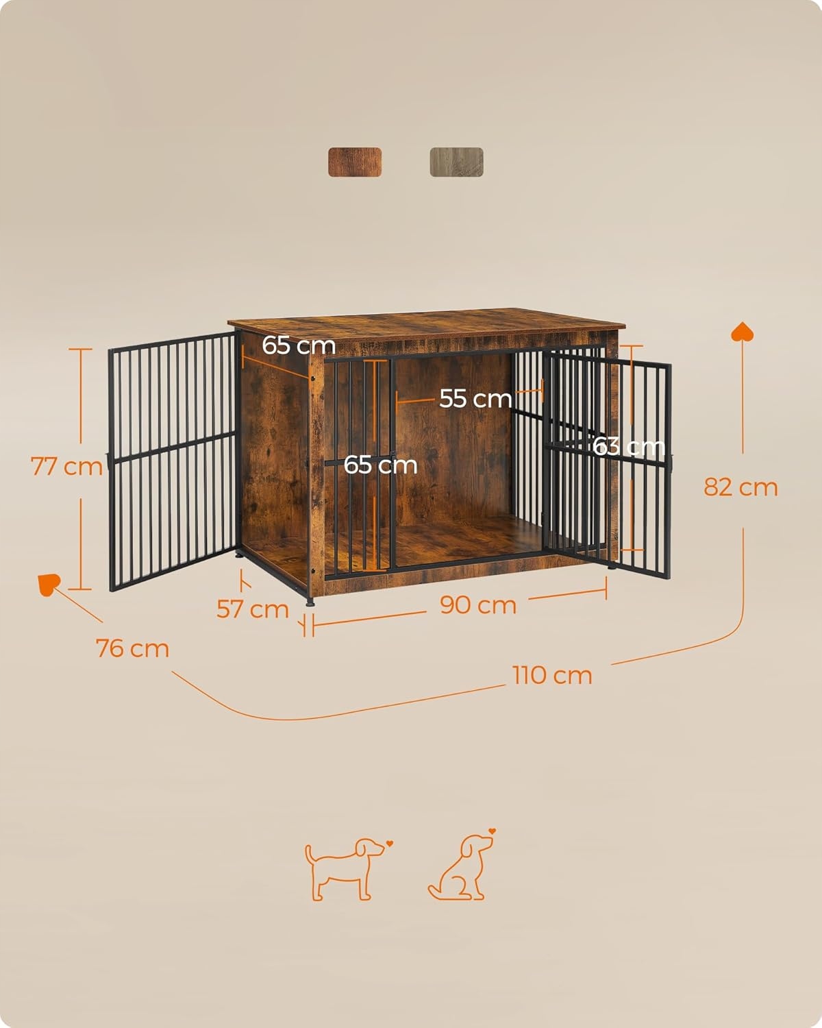 Funkcjonalna klatka dla psa 2 w 1, która łączy bezpieczne schronienie dla pupila z eleganckim meblem do salonu lub sypialni. Styl vintage w ciepłym brązie sprawia, że buda doskonale komponuje się z wystrojem wnętrza.