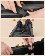 Transporter posiada praktyczne kieszenie oraz uchwyt na butelkę, dzięki czemu wszystkie niezbędne akcesoria masz zawsze pod ręką. Po złożeniu zajmuje niewiele miejsca, co ułatwia przechowywanie.