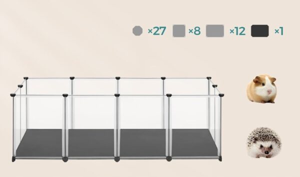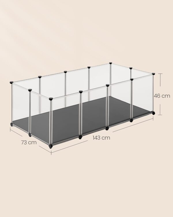 Klatka modułowa SONGMICS to praktyczne i estetyczne rozwiązanie dla właścicieli chomików, świnek morskich oraz królików. Duża powierzchnia zapewnia zwierzętom swobodę ruchu, miejsce do zabawy oraz eksploracji, a półprzezroczyste panele pozwalają na stały kontakt wzrokowy z pupilem.