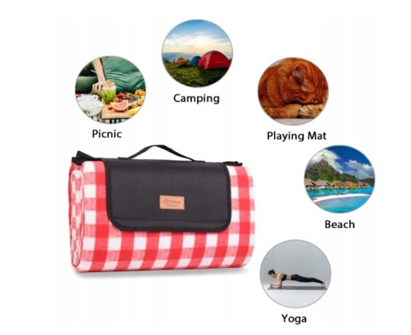 Wodoszczelny koc piknikowy zapewnia bardzo przestronne i komfortowe powierzchnie rekreacyjne: wymiary 200 x 200 cm (4㎡), zapewnia miejsce dla 4 – 6 osób. Po złożeniu ma wymiary ok. 40 x 25 x 12 cm, łatwy do przenoszenia za pomocą przewidzianego do tego uchwytu.