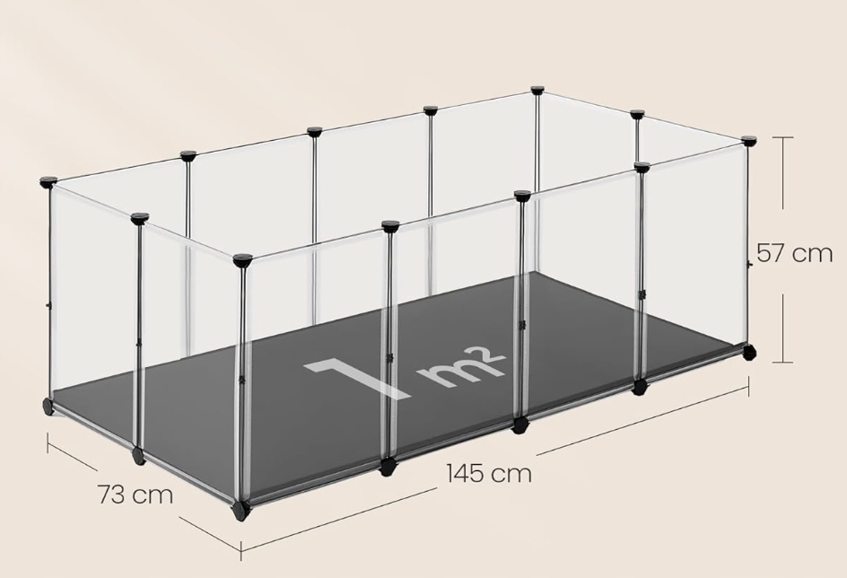 ✅ Przestronny i bezpieczny – duża powierzchnia 145 x 73 cm daje zwierzętom swobodę ruchu, a gładkie panele utrudniają ucieczkę.