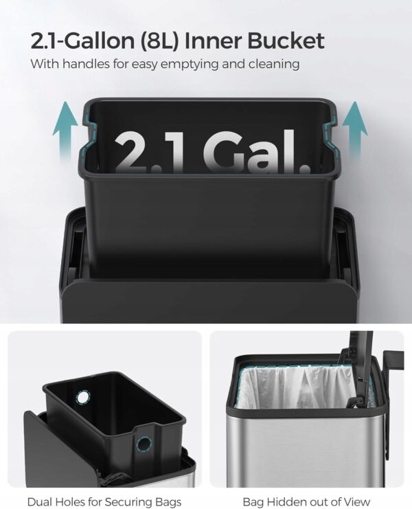 ✅ Wiszący kosz kuchenny Songmics 8L to praktyczne rozwiązanie do segregacji bioodpadów i codziennych śmieci. Wykonany z wysokiej jakości stali, jest odporny na rdzę i łatwy w czyszczeniu, a szczelna pokrywa skutecznie zatrzymuje nieprzyjemne zapachy.