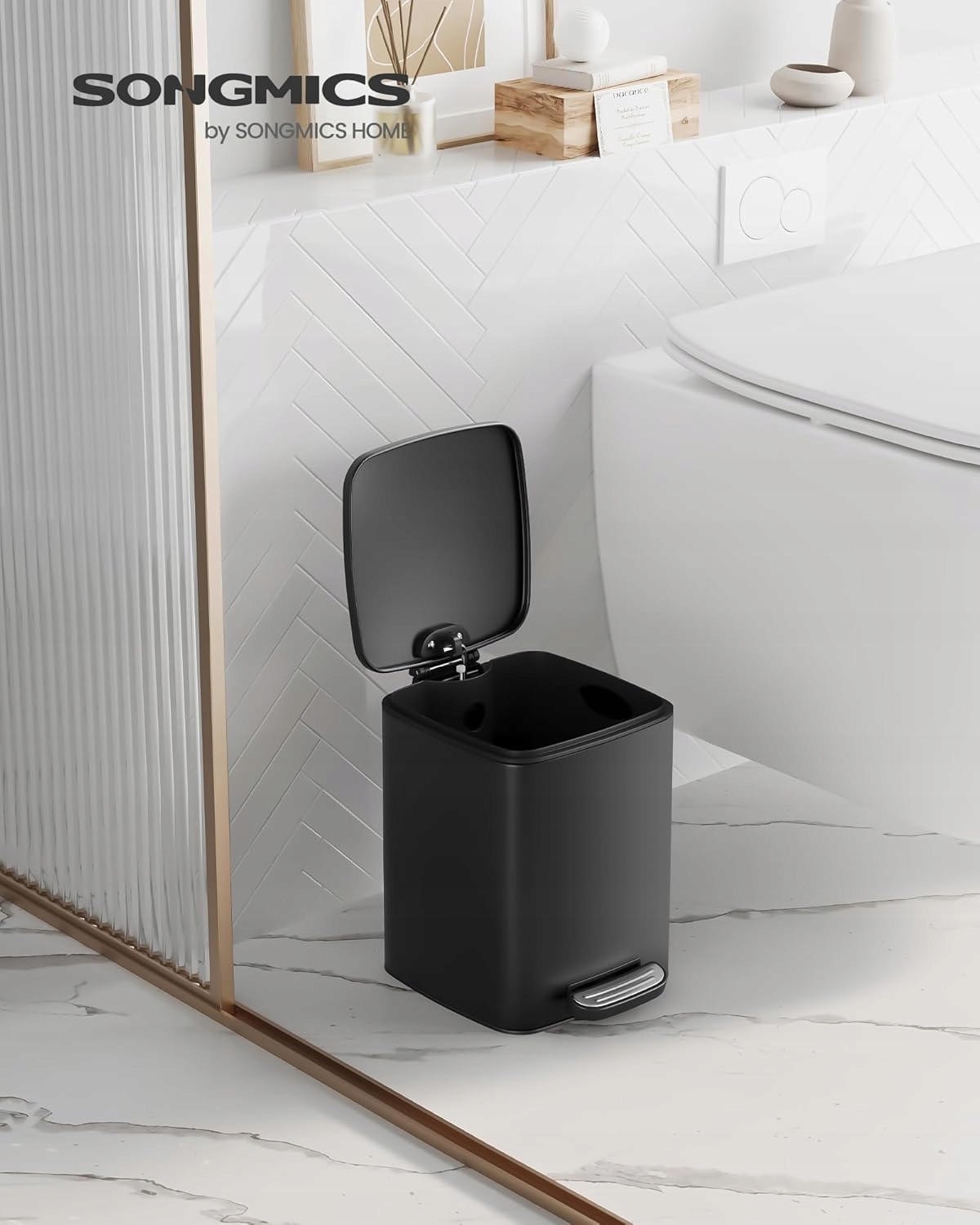 Kosz łazienkowy 6L z pedałem SoftClose stal czarny SONGMICS