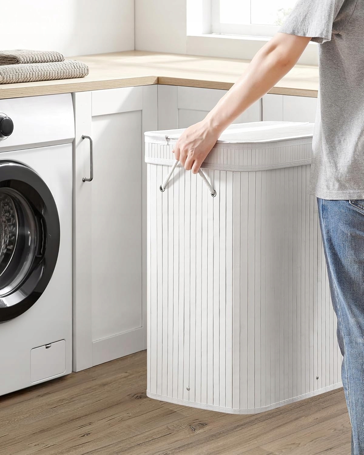 Kosz na pranie 100 L bambusowy z pokrywą SONGMICS biały