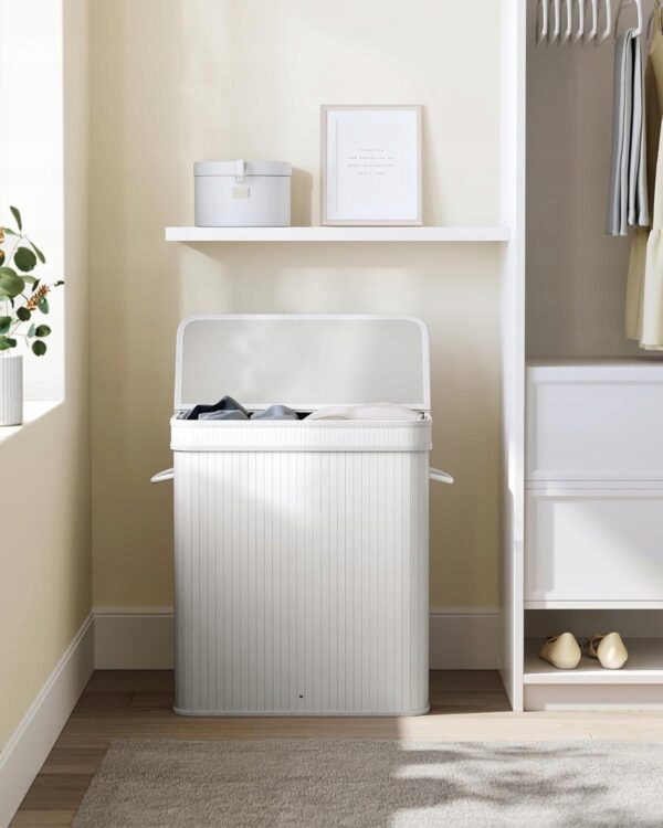 Kosz na pranie 100 L bambusowy z pokrywą SONGMICS biały