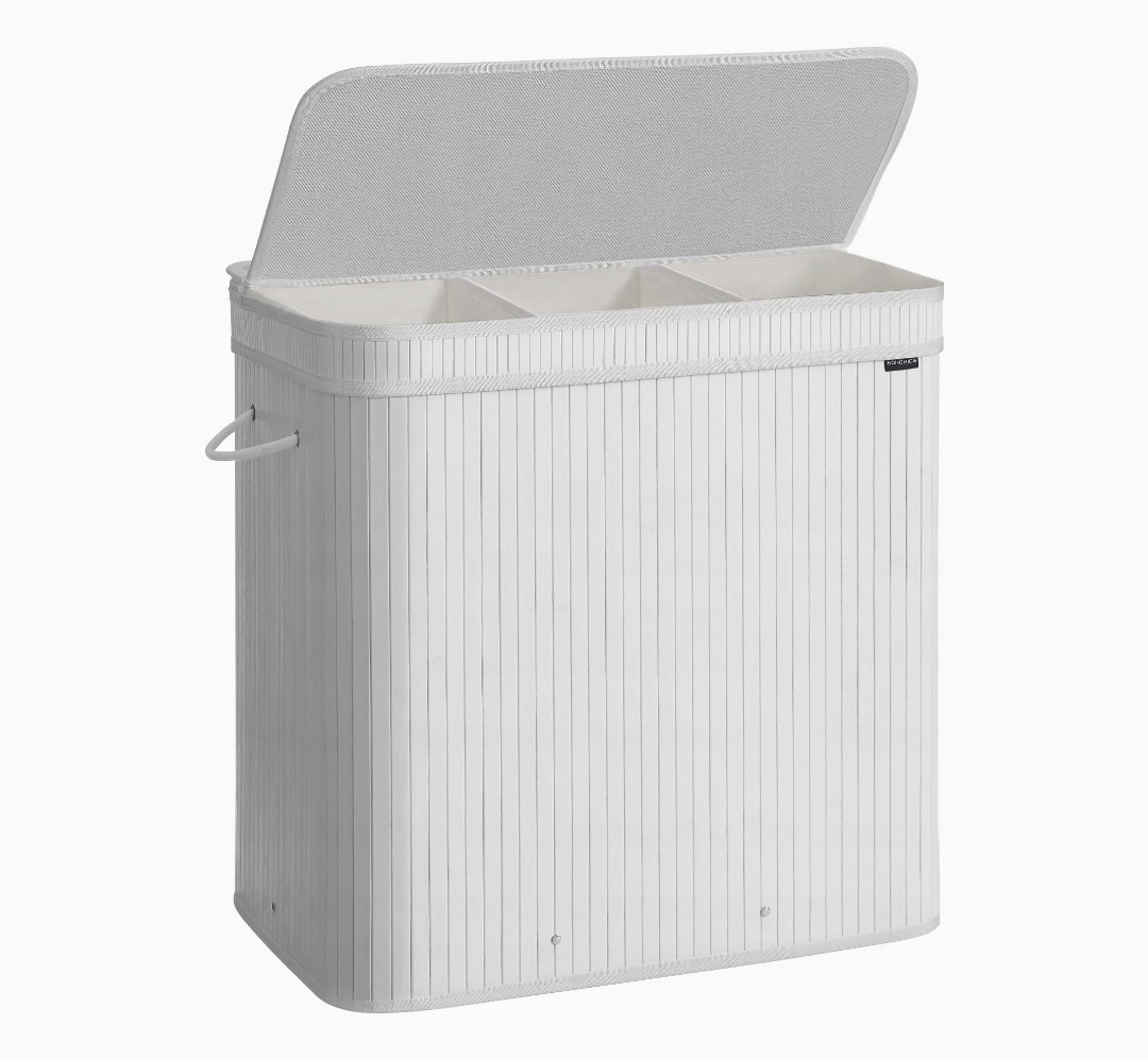 Nowoczesny kolor chmurno-biały i naturalny bambus sprawiają, że kosz doskonale pasuje do łazienki, sypialni, pralni czy garderoby.