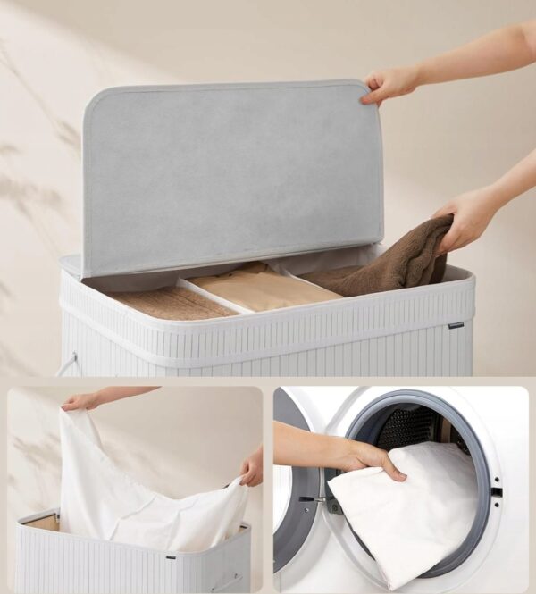 Kosz na pranie 150L bambusowy z pokrywą biały SONGMICS