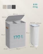 Kosz na pranie 170L 2 komory z pokrywą szary SONGMICS