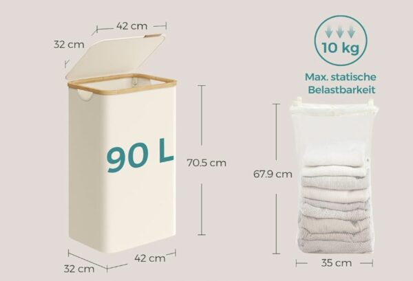 Kosz na pranie 90L wąski z pokrywą składany kremowy SONGMICS