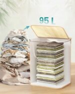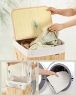 Stylowy i funkcjonalny kosz na pranie o pojemności 95 L to praktyczne rozwiązanie do łazienki, pralni lub sypialni. Naturalny bambus wprowadza do wnętrza ciepły, elegancki akcent, a przemyślana konstrukcja ułatwia codzienne obowiązki.