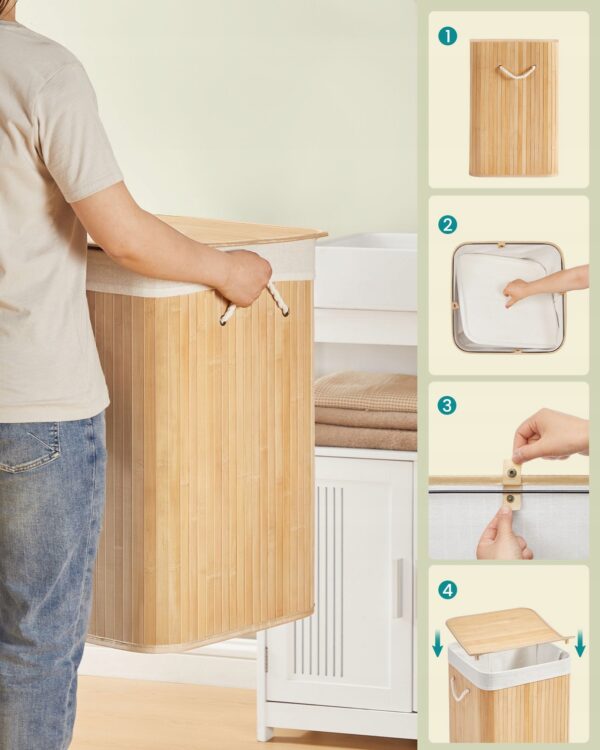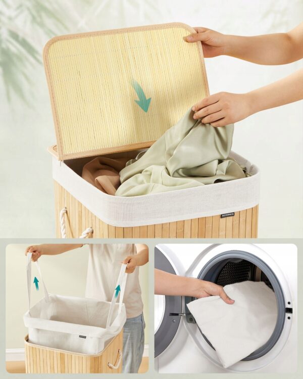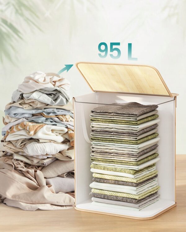 Kosz na pranie bambusowy 95L z pokrywą składany SONGMICS