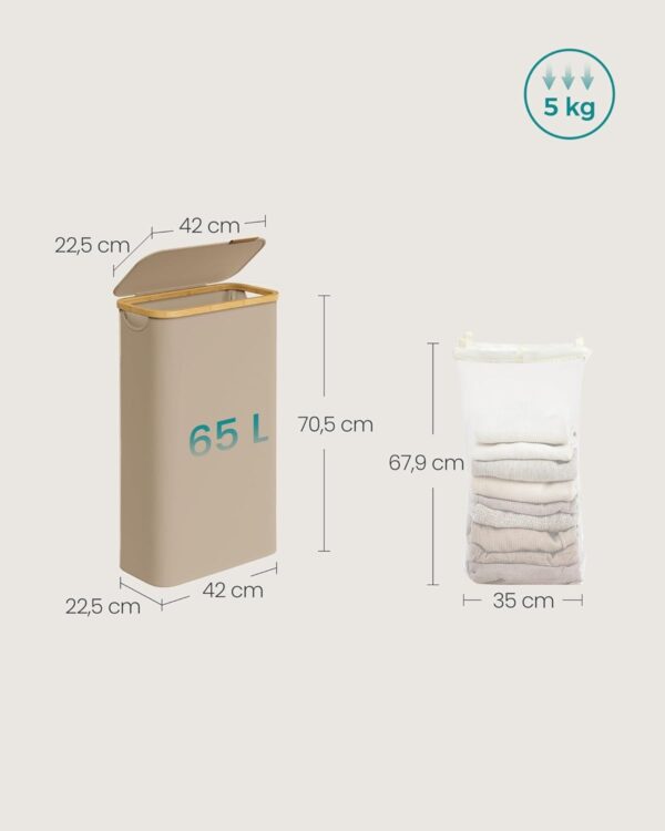 Kosz na pranie slim 65L wąski składany z pokrywą SONGMICS