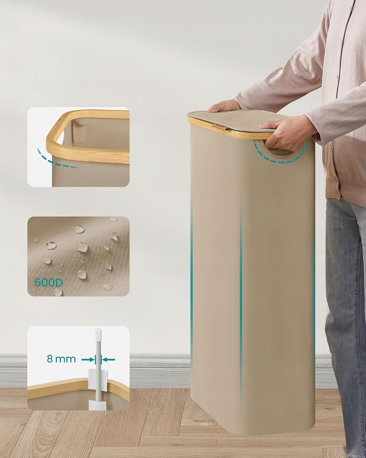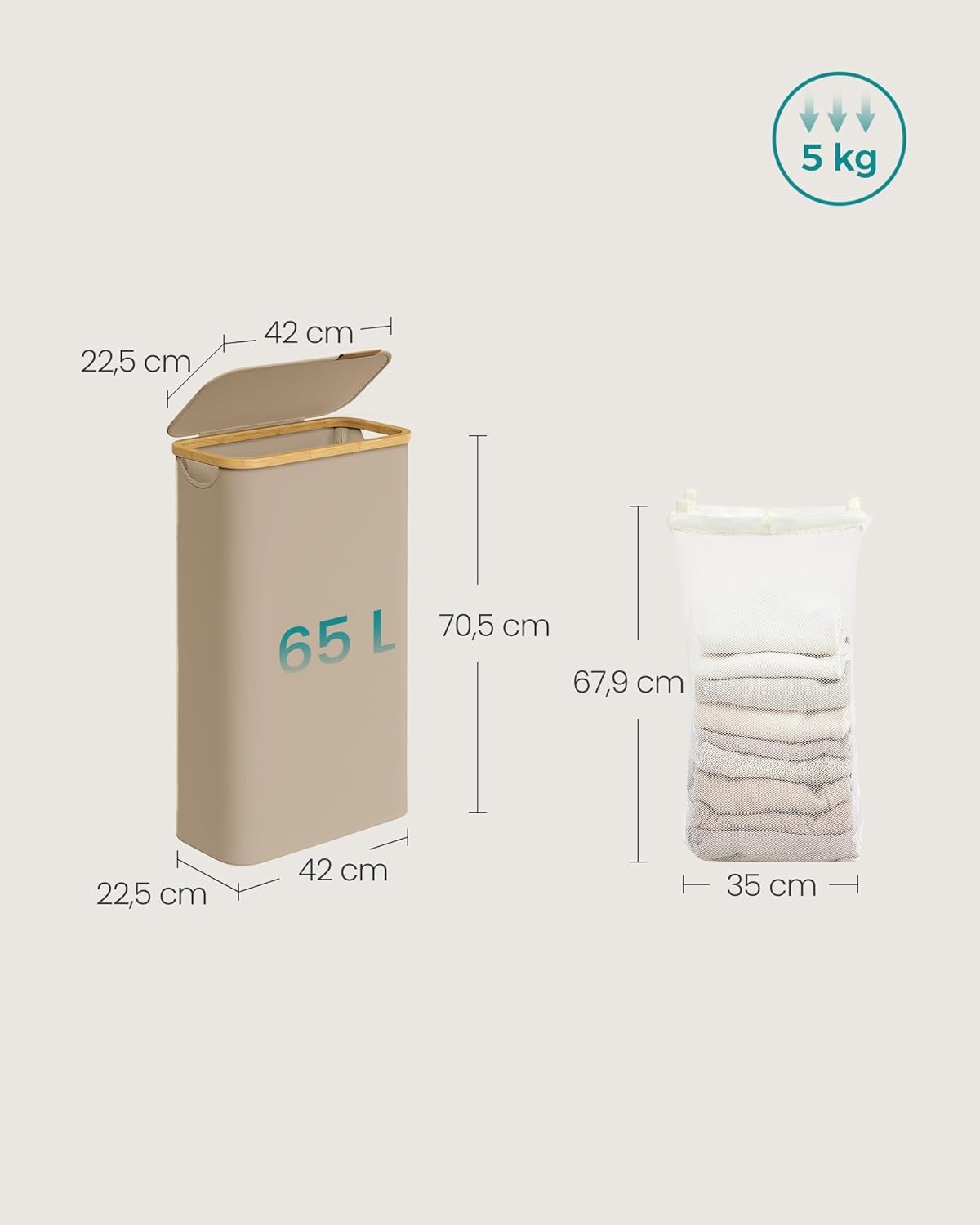 Smukły kosz na pranie o pojemności 65 litrów to idealne rozwiązanie do małych przestrzeni. Dzięki wąskiej konstrukcji świetnie sprawdzi się w łazience, pralni czy sypialni, gdzie liczy się każdy centymetr.