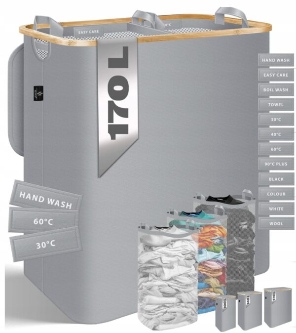 Kosz na pranie KESSER® imponuje swoją dużą pojemnością, dołączonym workiem na pranie, trwałą ramą bambusową, materiałami odpychającymi oraz możliwością w składaniu kosza do łatwego przechowywania.