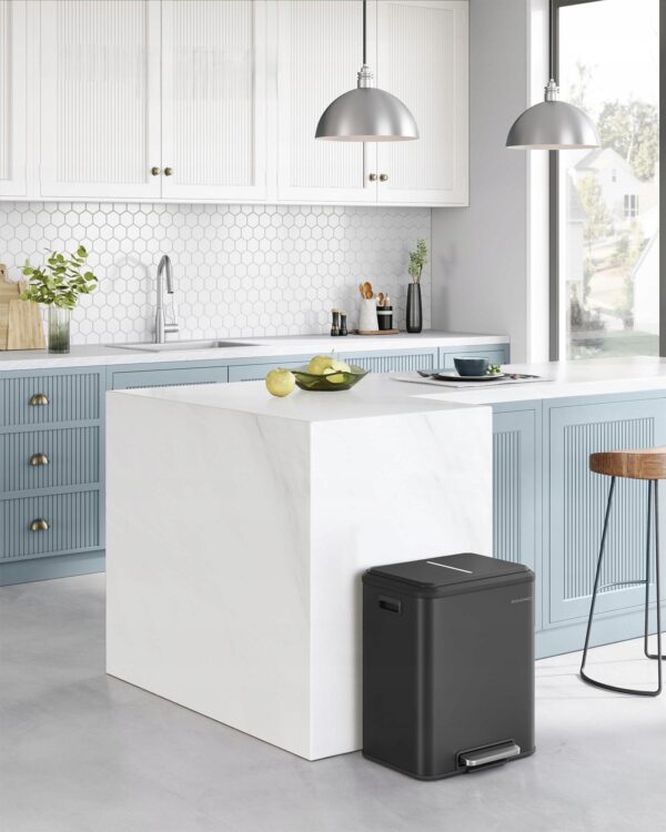 ✅ Podwójny kosz kuchenny Songmics 2 x 15L to praktyczne rozwiązanie do wygodnej segregacji odpadów i recyklingu. Dwie oddzielne komory ułatwiają utrzymanie porządku w kuchni i szybkie sortowanie śmieci.