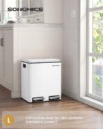 Nowoczesny kosz do segregacji marki SONGMICS to funkcjonalność i elegancki design w jednym. Biały kolor i prosta forma doskonale pasują do każdej kuchni.