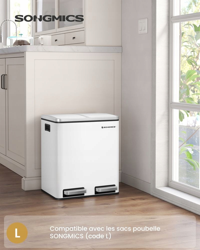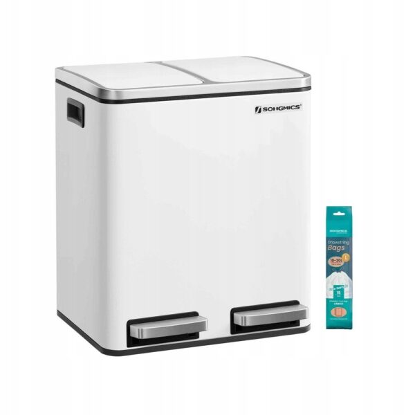 Kosz na śmieci 2x15L z pedałami biały do segregacji SONGMICS