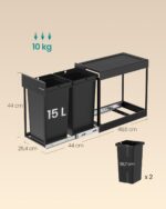 Kosz na śmieci pod szafkę 2 x 15 l wysuwany czarny Songmics