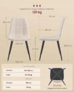 Krzesła do jadalni tapicerowane 2 szt. kremowe VASAGLE