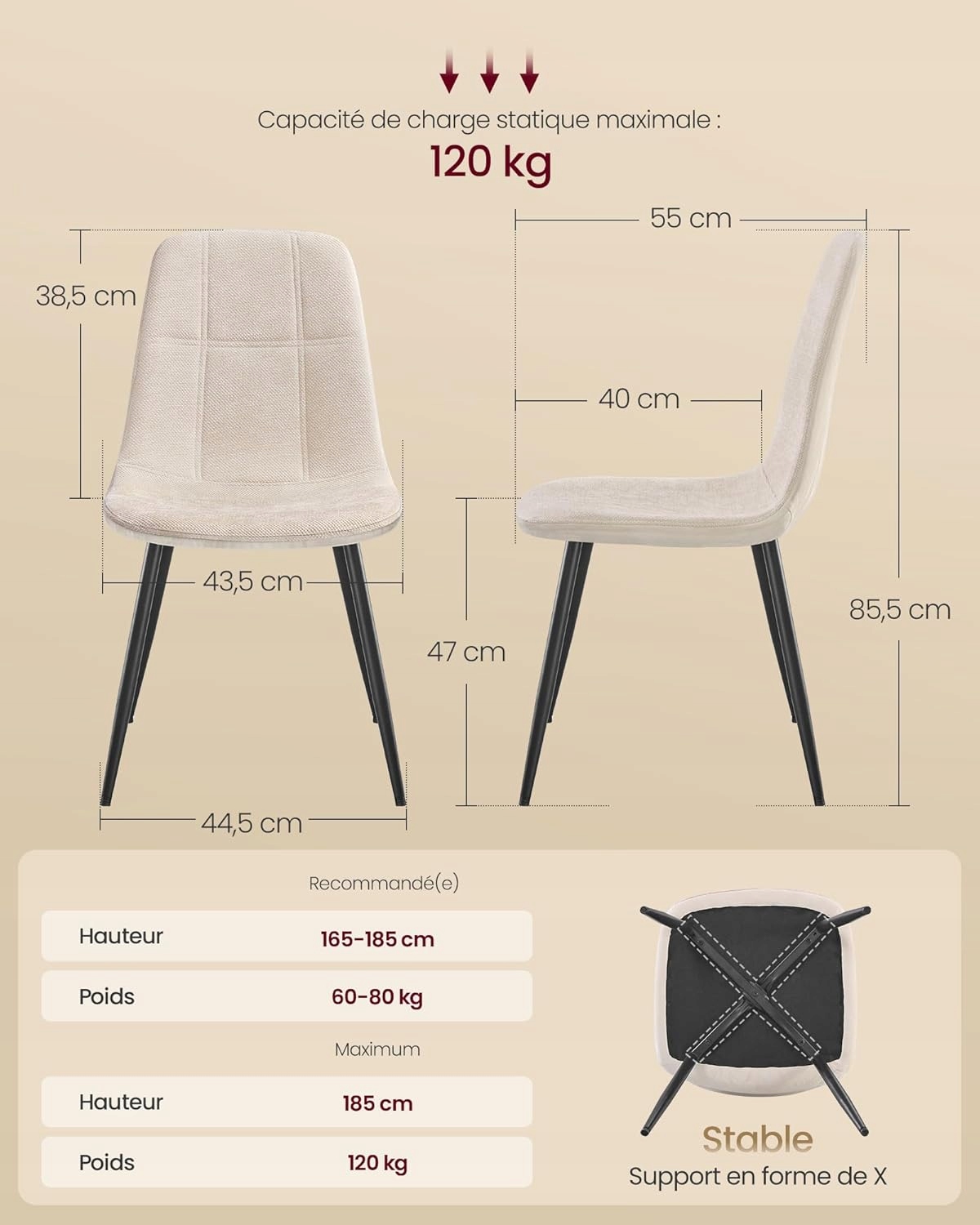 - Nie przekraczać maksymalnego obciążenia 120 kg na jedno krzesło.