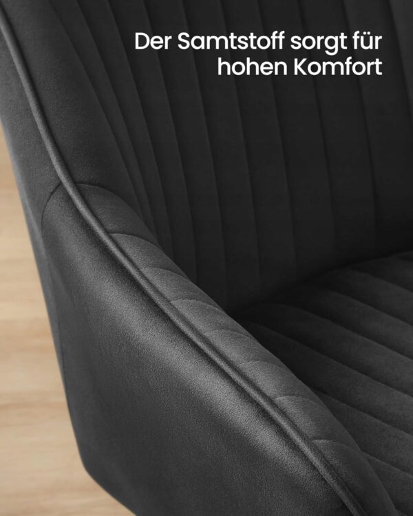 Eleganckie krzesło welurowe w kolorze czarny atrament to połączenie komfortu i nowoczesnego designu. Idealne do jadalni, kuchni, salonu lub jako stylowy fotel przy toaletce.