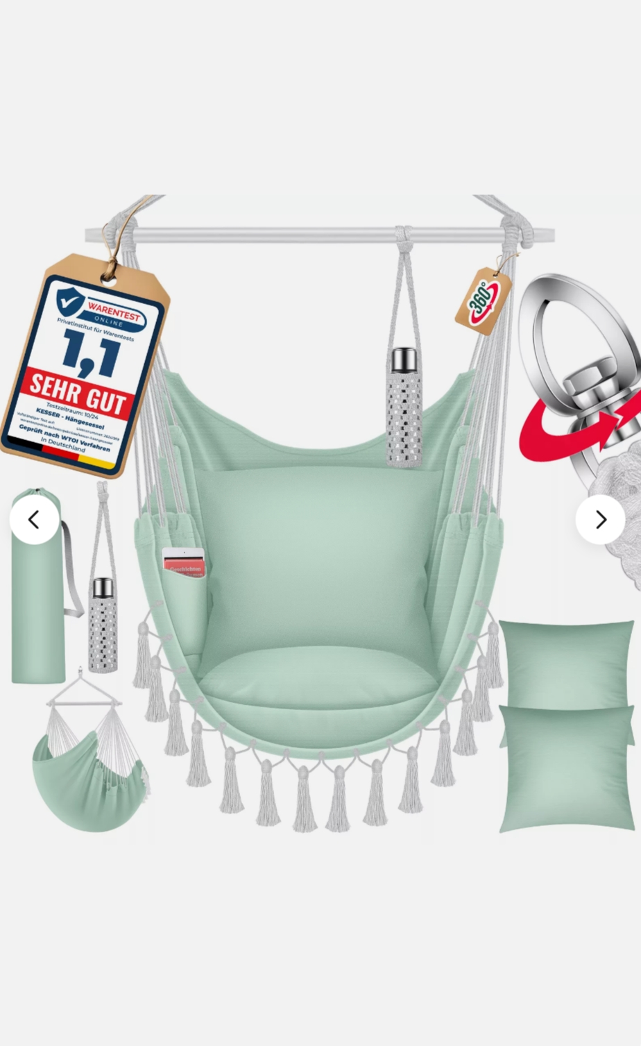 ✅ KESSER Safari fotel wiszący z miękkiej bawełny, z 2 wysokiej jakości poduszkami, uchwytem na napoje, kieszenią na książki oraz torbą do przenoszenia, obciążenie do 150 kg, do użytku wewnętrznego i zewnętrznego.