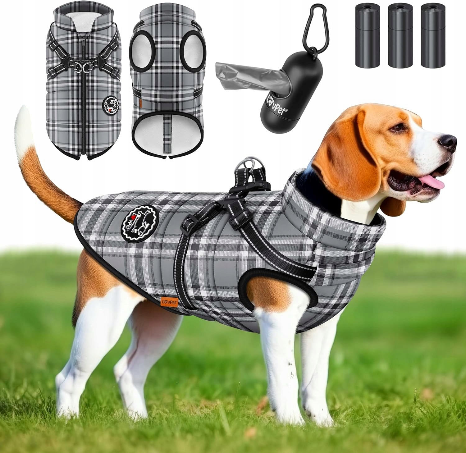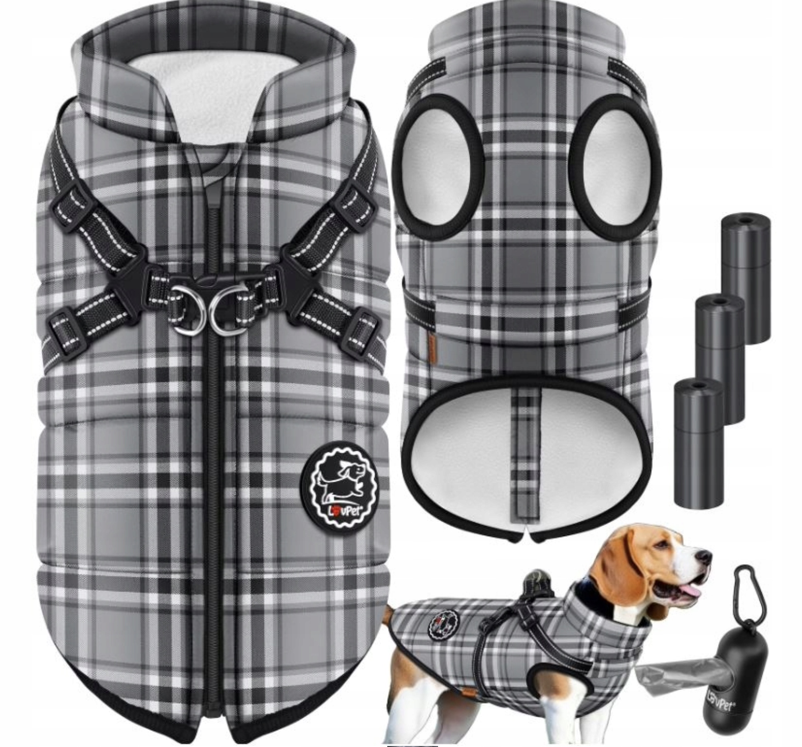 Kurtka dla psa LovPet wykonana z polaru i tafty, wodoodporna konstrukcja i mocne zapięcia, regulowana.