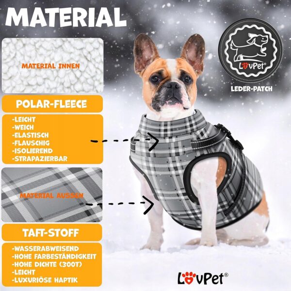 Kurtka dla psa LovPet wykonana z polaru i tafty, wodoodporna konstrukcja i mocne zapięcia, regulowana.