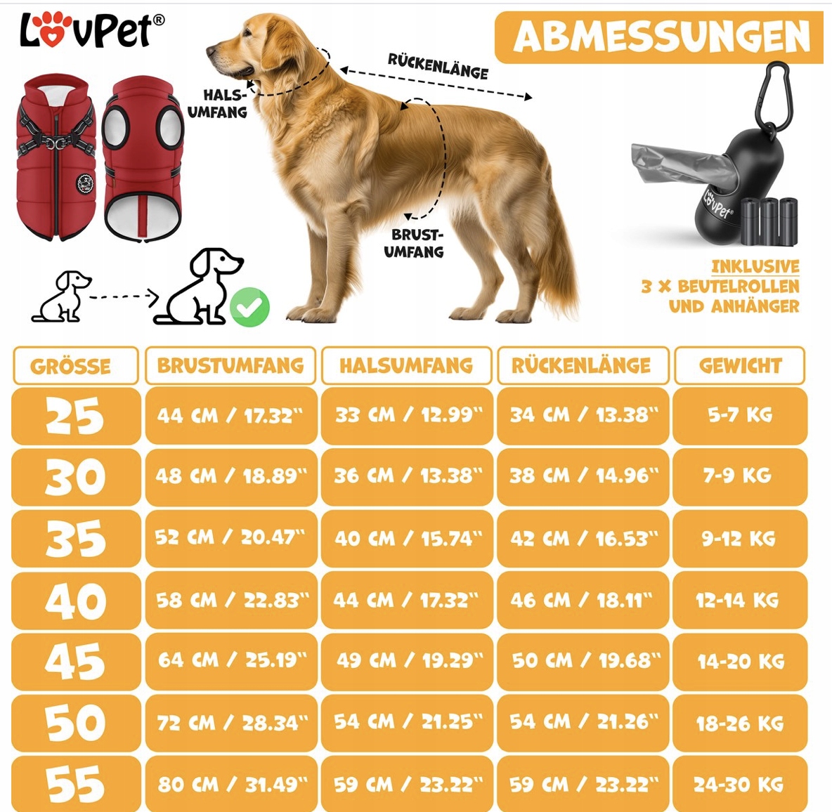 Kurtka dla psa Lovpet 5XL czerwona z polarem + worki na odchody