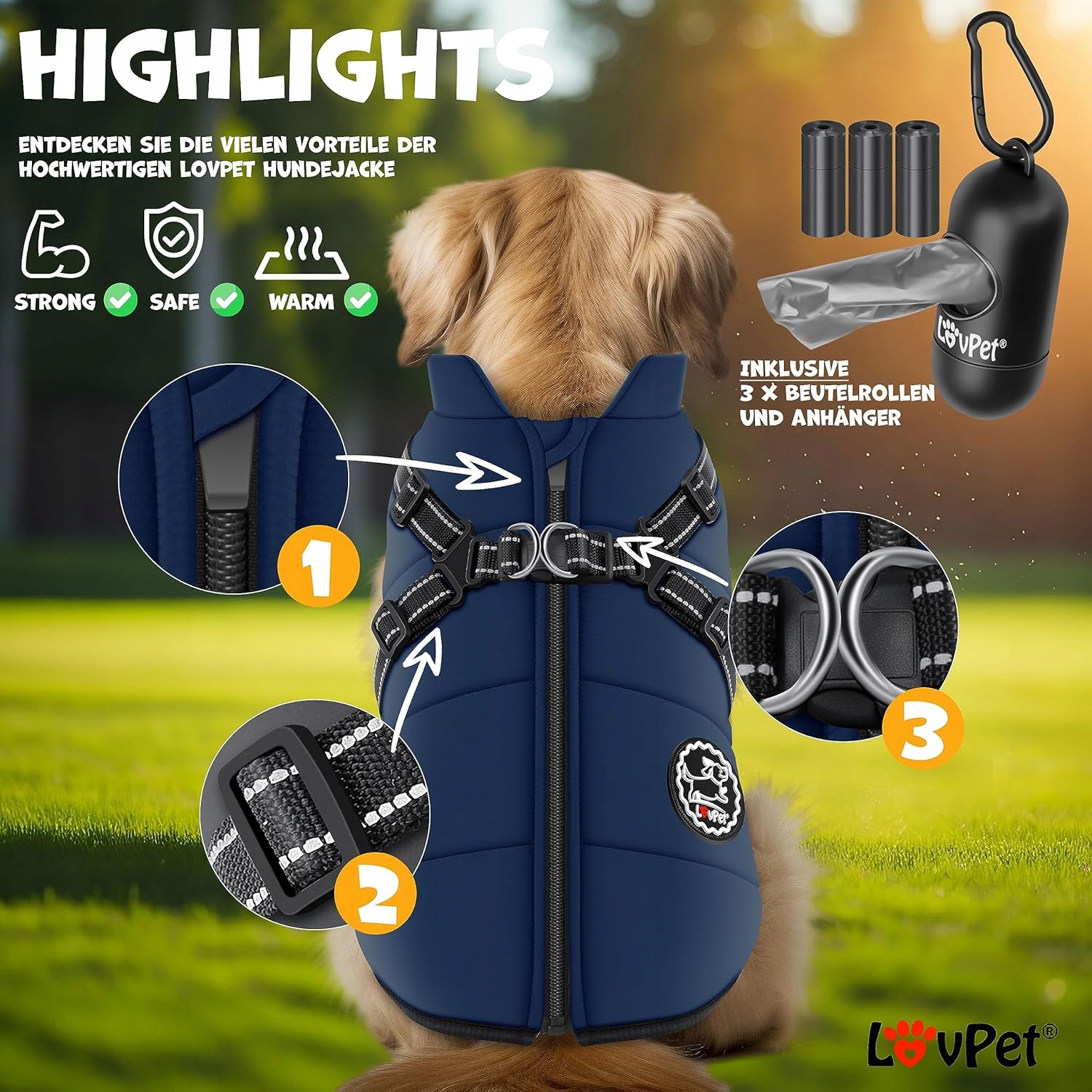 Kurtka dla psa LovPet wykonana z polaru i tafty, wodoodporna konstrukcja i mocne zapięcia, regulowana.