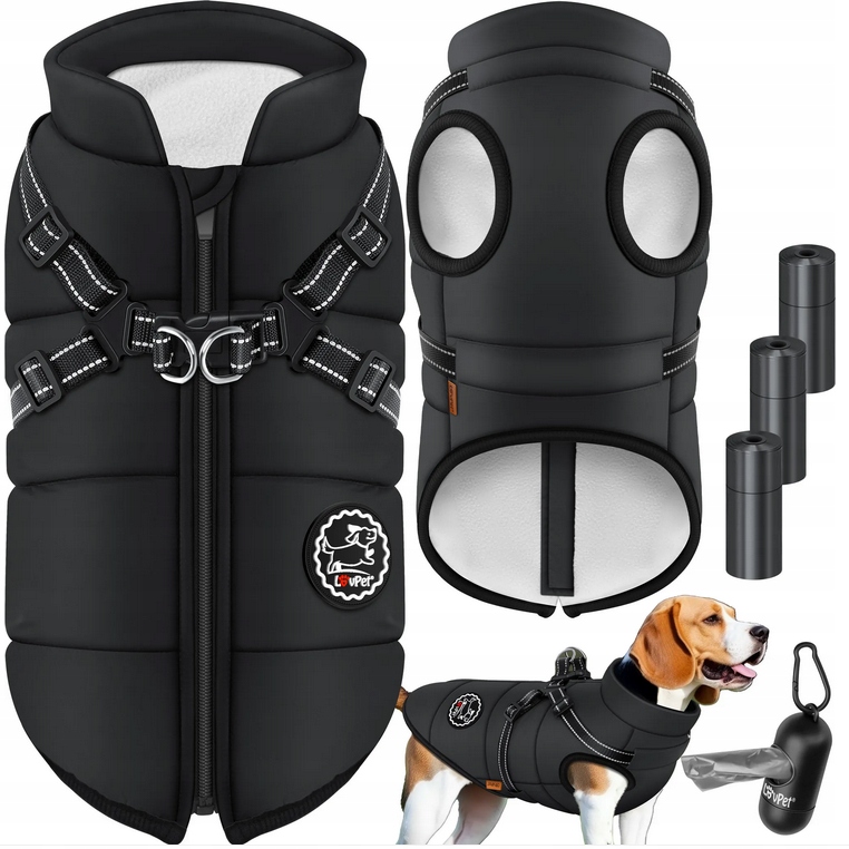 Kurtka dla psa LovPet wykonana z polaru i tafty, wodoodporna konstrukcja i mocne zapięcia, regulowana.