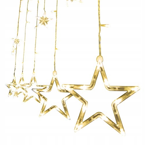 ⭐ Łańcuch świetlny gwiazdy rozłożony na 12 pasmach, każde pasmo ma gwiazdę. Łańcuch świetlny LED o długości 2 m i szerokości 1 m, kabel zasilający 3 m ze standardową wtyczką UE 31V (łącznie 4m), energooszczędny 3,5 W, z przezroczystym kablem.
