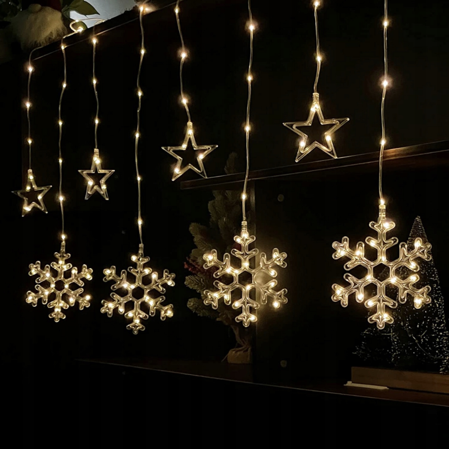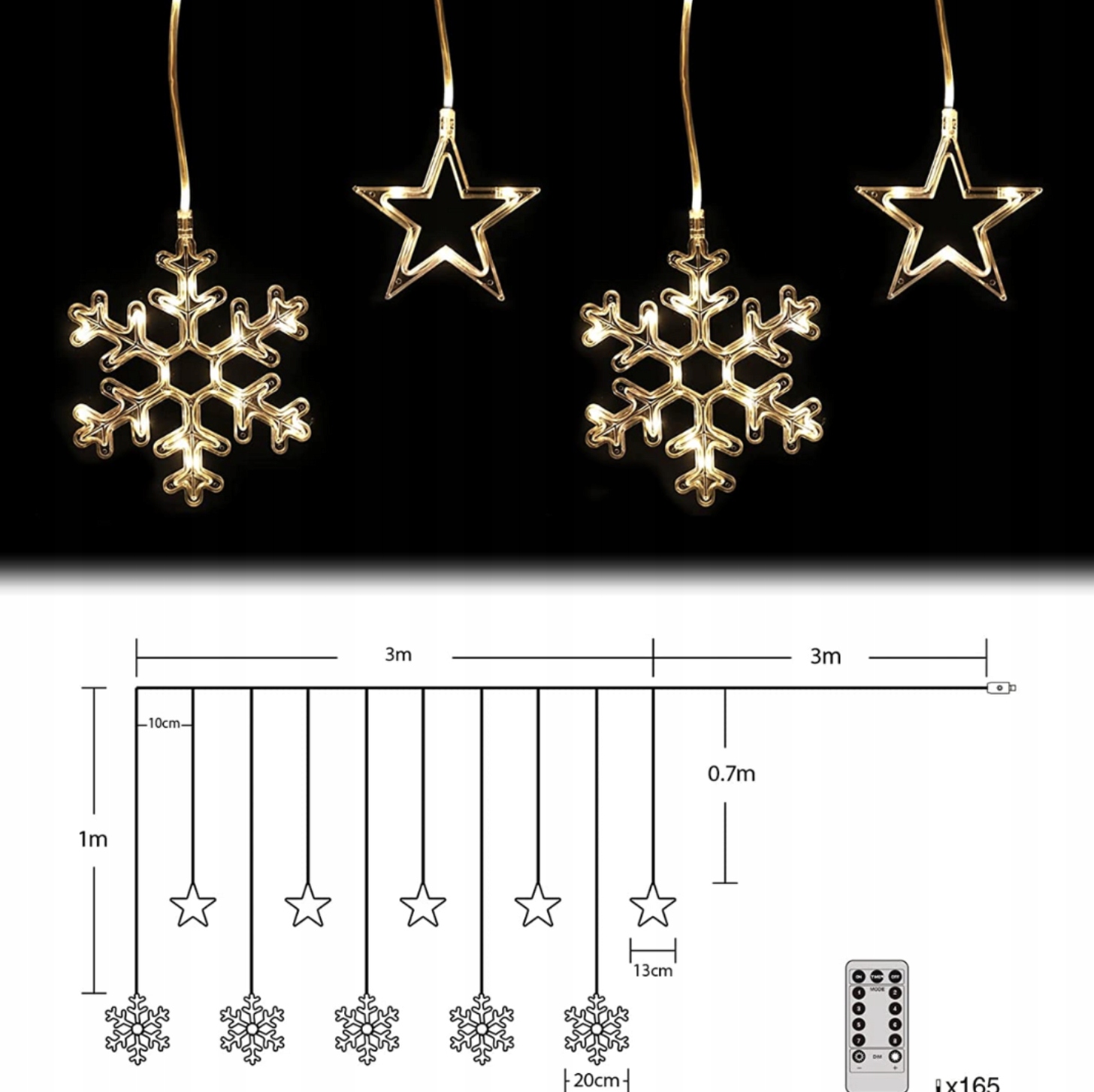 Kurtyna świetlna LED 3x1 m ze śnieżynkami i gwiazdkami 165 LED ciepły biały