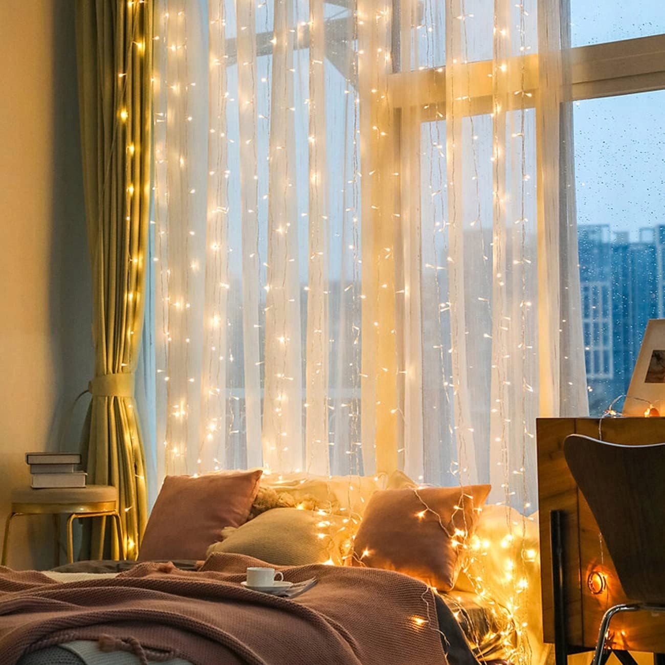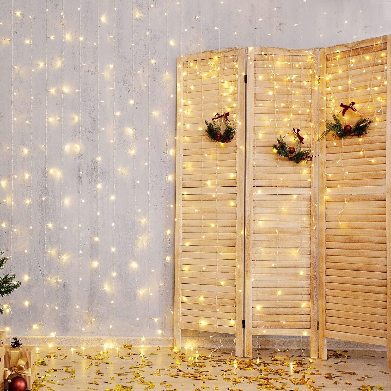 ✅ Parametry kurtyny świetlnej LED: 3 m szerokości x 3 m długości, 300 diod LED; temperatura barwowa: 2800–3000 K; odległość między lampkami: 30 cm; długość kabla: 3 m. IP44 – ochrona przed wodą rozbryzgową.