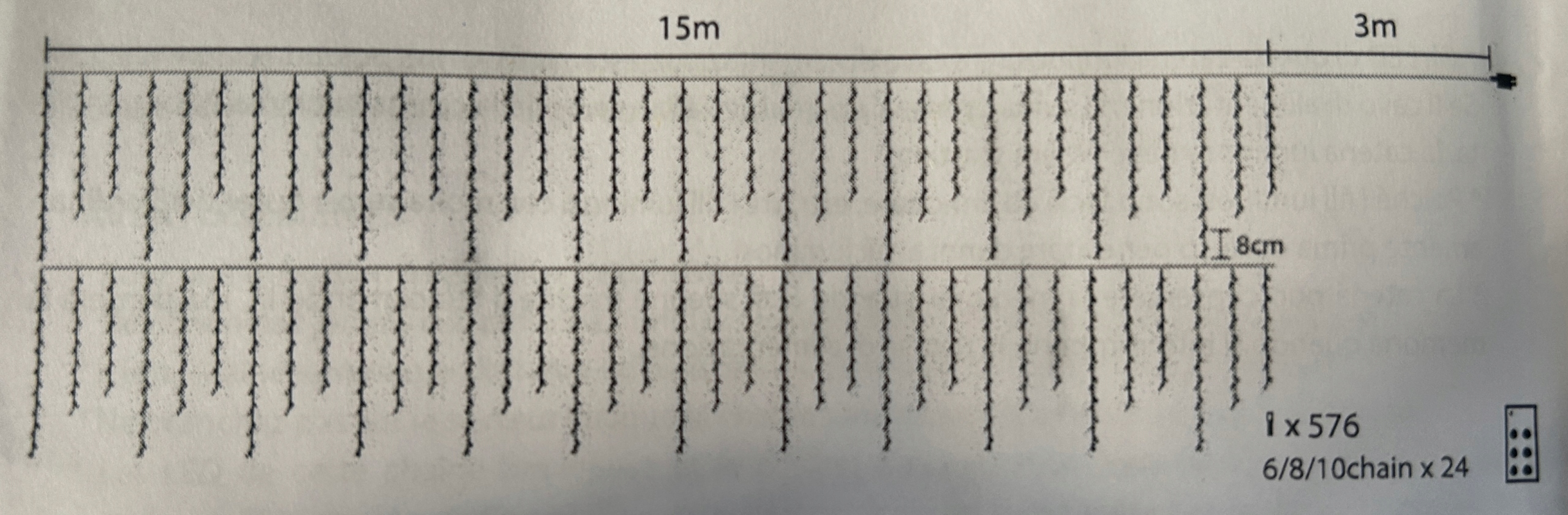 Salcar Kurtyna świetlna LED z pilotem, 15 m, 576 diod LED, ciepły biały