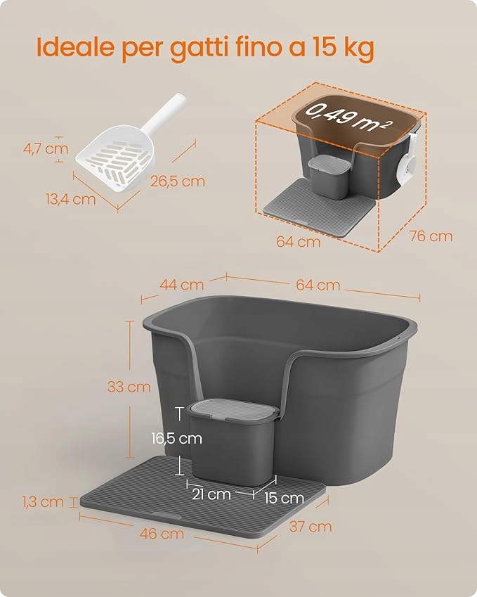 ✅ Zestaw 4 w 1 – kuweta, miarka, mata ochronna i pojemnik na worki
