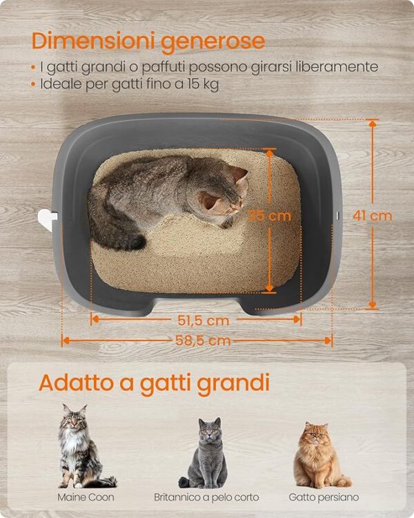 Kuweta dla dużego kota 64x44x33 cm wysoka ciemnoszara Feandrea