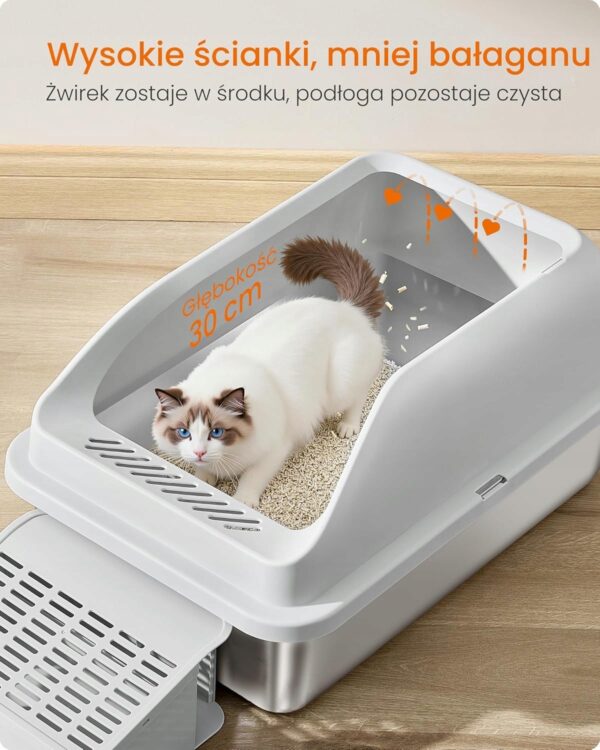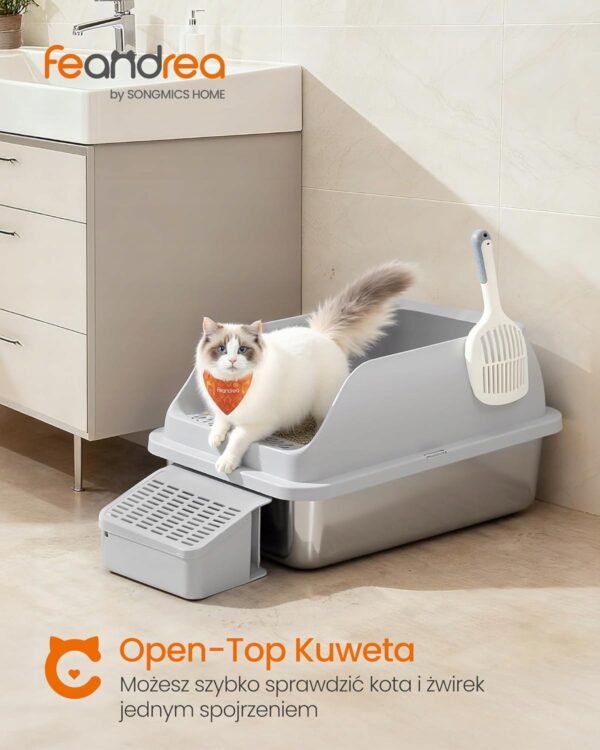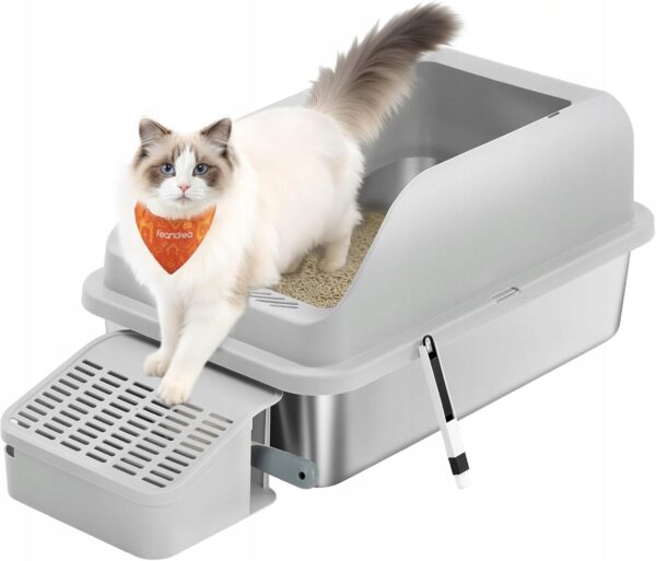 Kuweta dla kota stal nierdzewna duża otwarta wysoka Feandrea