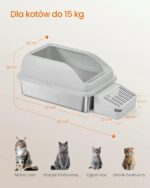 Duża przestrzeń wewnątrz pozwala na swobodne poruszanie się i kopanie, co sprawia, że kuweta idealnie nadaje się także do domów z kilkoma kotami. W zestawie znajduje się łopatka i szczotka, które ułatwiają szybkie sprzątanie.