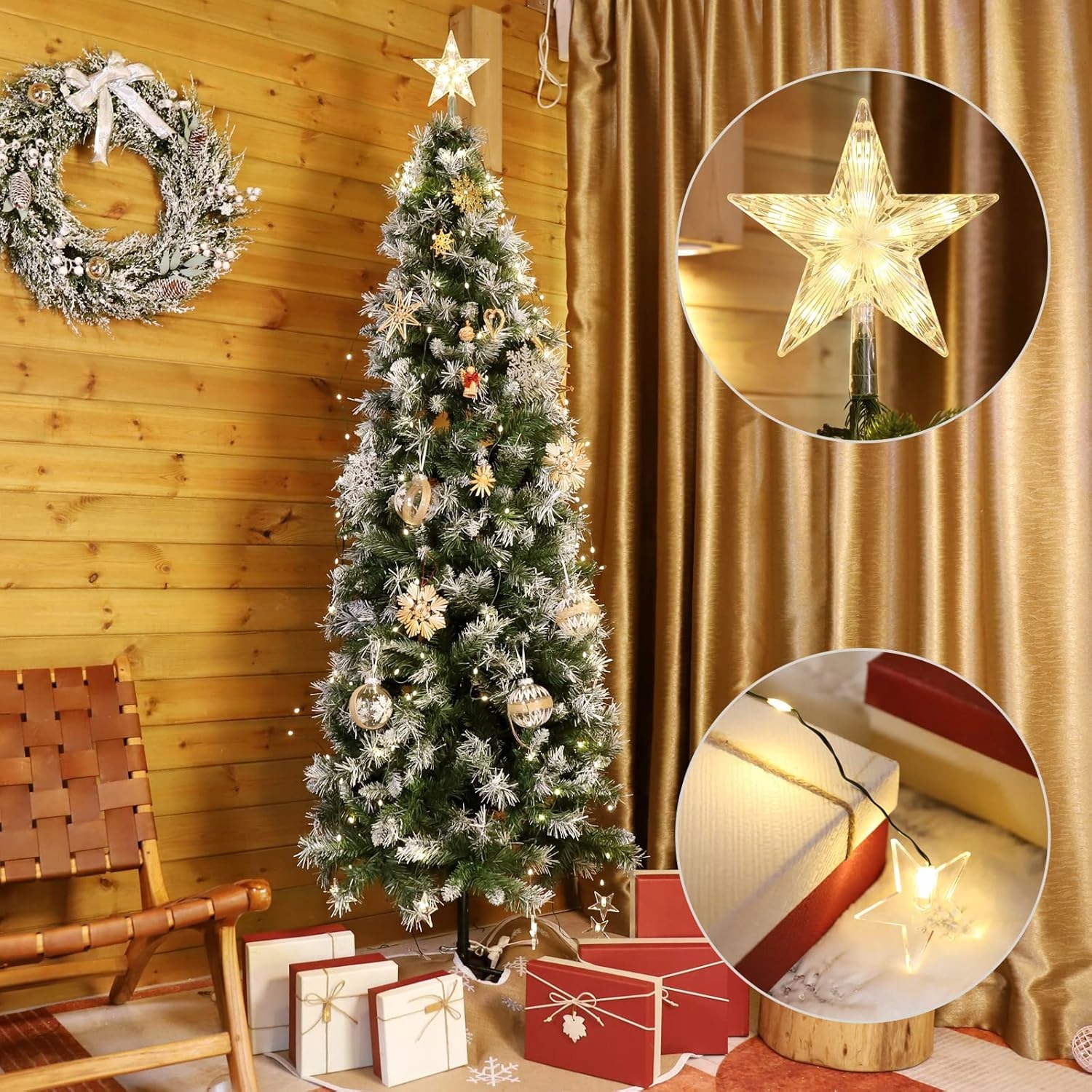 - Długość oświetlenia: 2 metry, z 10 szeregami świateł LED, idealne do choinek o wysokości 1,5–2,8 metra.