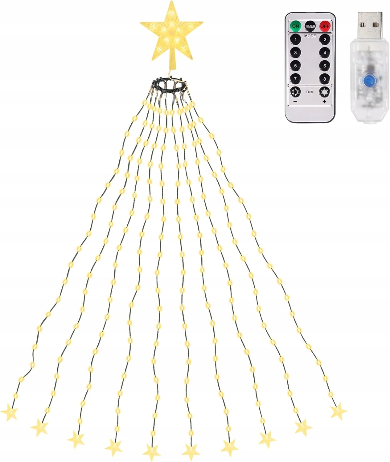 - Długość oświetlenia: 2 metry, z 10 szeregami świateł LED, idealne do choinek o wysokości 1,5–2,8 metra.