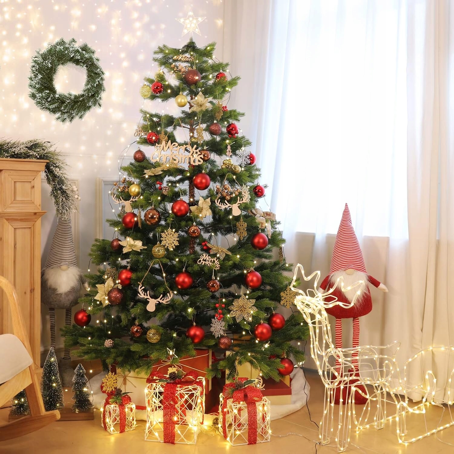 - Długość oświetlenia: 2 metry, z 10 szeregami świateł LED, idealne do choinek o wysokości 1,5–2,8 metra.