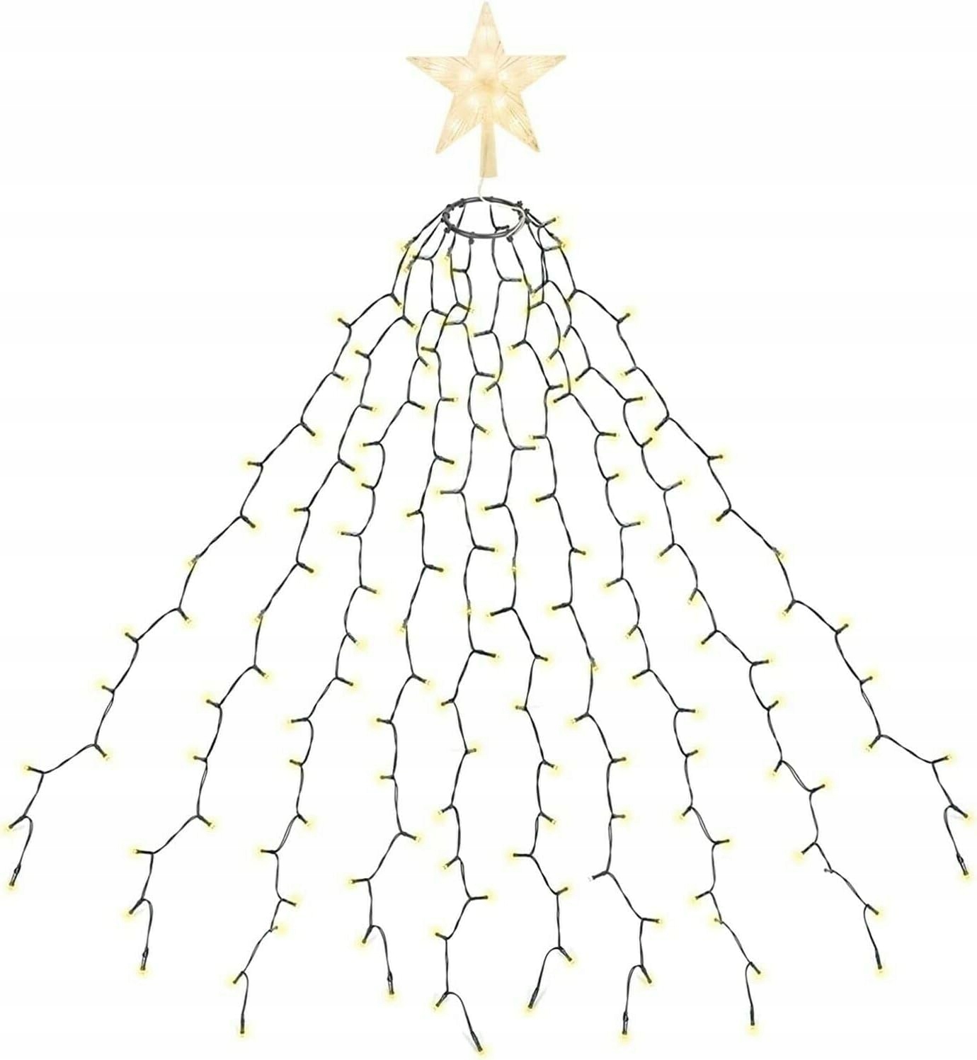 Lampki choinkowe z pierścieniem i gwiazdą, 3m, 10 pasm, 360 diod LED, Ciepła biel