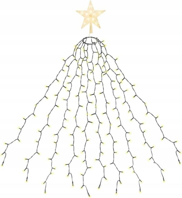 Lampki choinkowe z pierścieniem i gwiazdą, 3m, 10 pasm, 360 diod LED, Ciepła biel