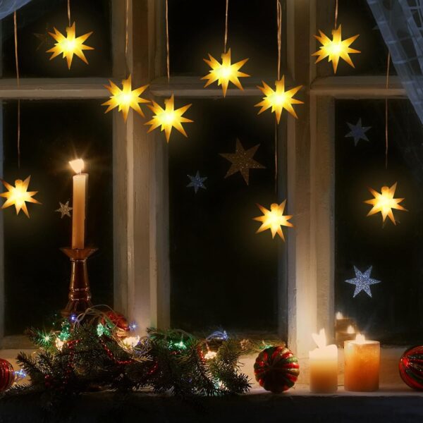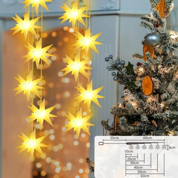 ✅ Konstrukcja pojedynczej gwiazdy z ciepłym białym światłem zapewnia delikatne światło i jednocześnie tworzy różną świąteczną atmosferę, łańcuch świetlny z gwiazdami, który sprawi radość Twojemu życiu.