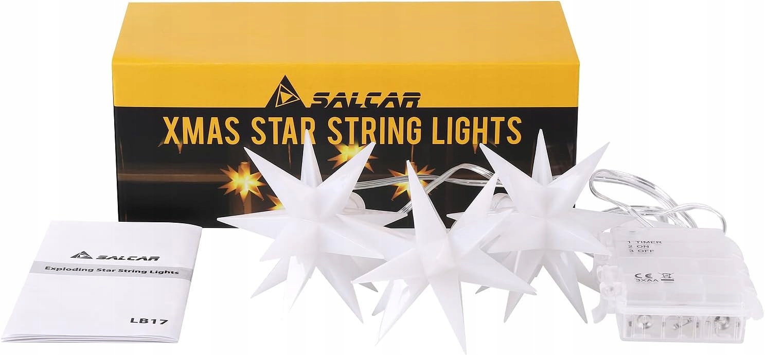 SALCAR LED Gwiazdy Bożonarodzeniowe, Podświetlone, Zewnętrzne i Wewnętrzne, Dekoracja Świąteczna LED, 3D Gwiazdy Świąteczne na Okno, Ciepła Biel