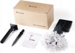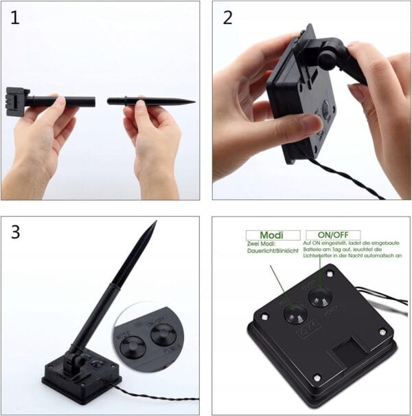 Lampki wyposażone są w panel solarny z kolcem do wbicia w ziemię, dzięki czemu nie wymagają podłączenia do prądu. W ciągu dnia panel ładuje akumulator, a po zmroku lampki włączają się automatycznie.